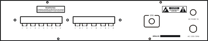 This equipment is used to monitor/listen the audio output status of PA-T13D(12 Zone Speaker Selector) or amplifier. It can monitor up to 10 speaker zones.