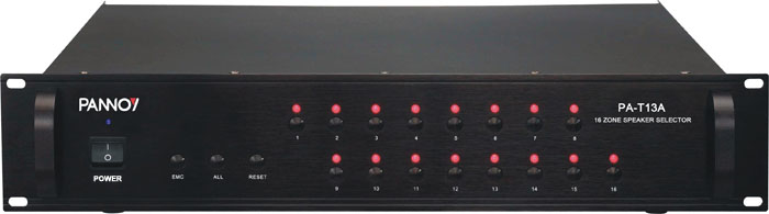 This equipment is used to distribute/divide the public address system into several speaker zones, it can distribute up to 16 speaker zones, then each speaker zone can be controlled and managed respectively.